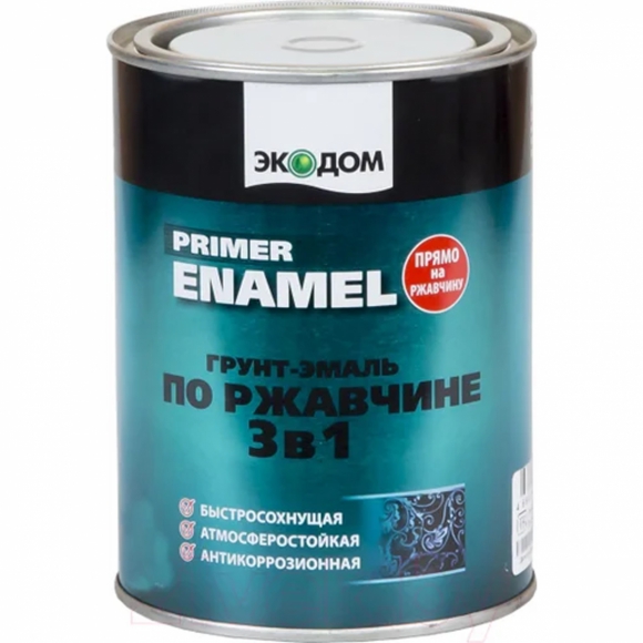 Грунт-эмаль 3в1 ЭКОДОМ по ржавчине д/металла белая 0.9л