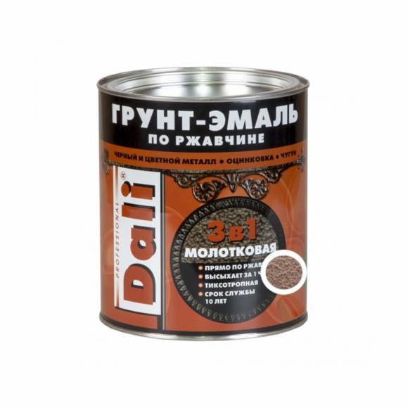 Грунт-эмаль 3в1 DALI по ржавчине молотковая коричн 2л