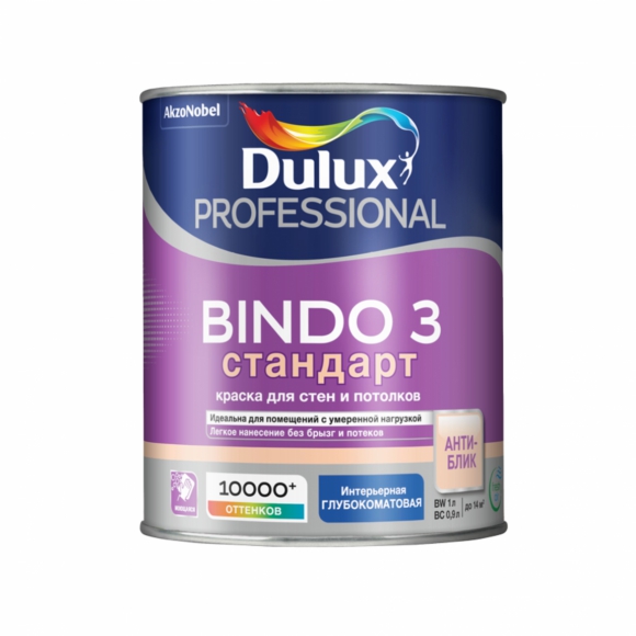 Краска водоэмульсионная Dulux Professional Bindo 3 BC интерьерная глубокоматовая для стен и потолков моющаяся 0.9л