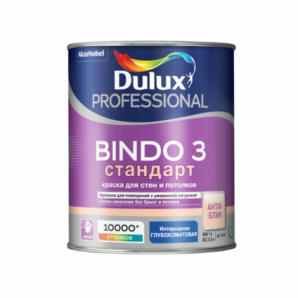 Краска водоэмульсионная Dulux Professional Bindo 3 BW интерьерная глубокоматовая для стен и потолков моющаяся 1л