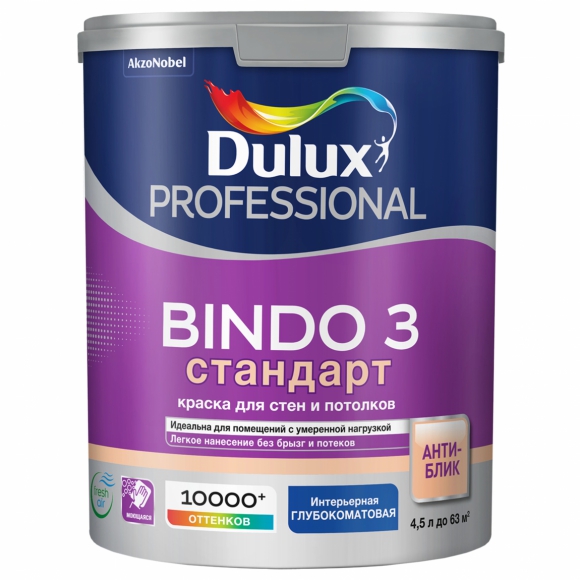 Краска водоэмульсионная Dulux Professional Bindo 3 BW интерьерная глубокоматовая для стен и потолков моющаяся 4.5л