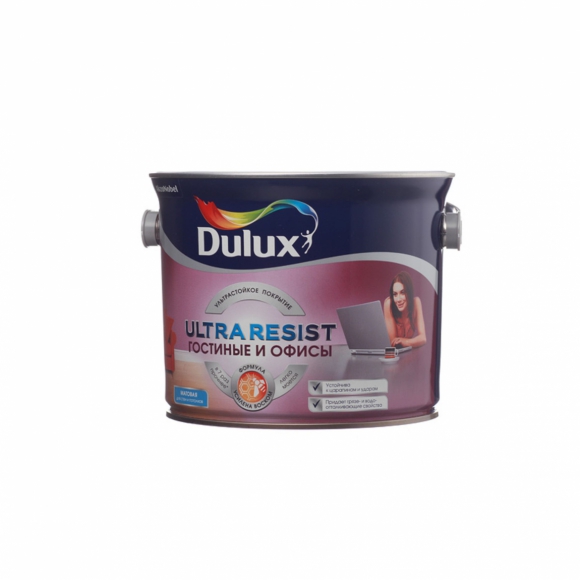 Краска водоэмульсионная Dulux ULTRA RESIST Гостиные и офисы ультрастойкая матовая для стен и потолков моющаяся BW 2.5л