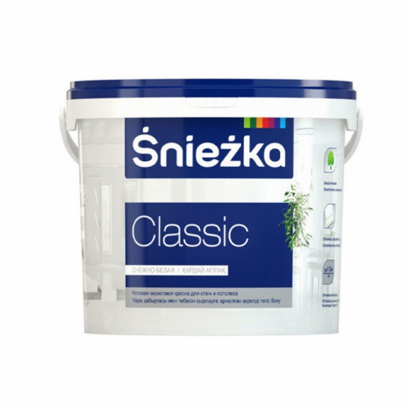 Краска водоэмульсионная SNIEZKA CLASSIC матовая для стен и потолков , влажная уборка 10л