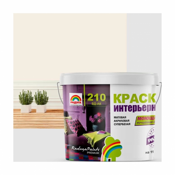 Краска водоэмульсионная РАДУГА-210 акриловая матовая для стен и потолков моющаяся 7кг
