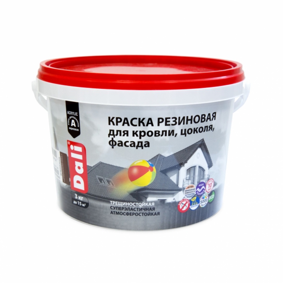 Краска резиновая DALI д/кровли цоколя фасада серый 3 кг