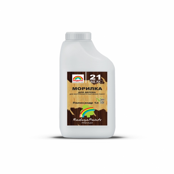 Морилка РАДУГА-21 акриловая для дерева проявляет натуральный рисунок древесины,делает её поверхность блестящей , в состав входит антисептик цвет палисандр 1л