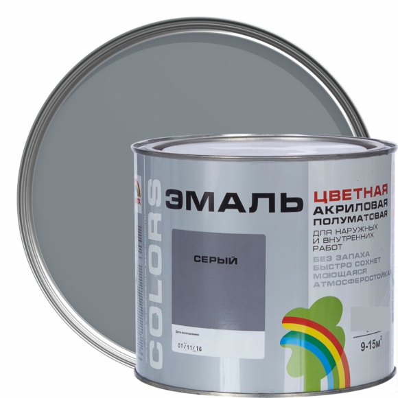 Эмаль РАДУГА-220 Colors акриловая полуматовая для металла,дерева,бетона и кирпича без запаха серая 0.9л