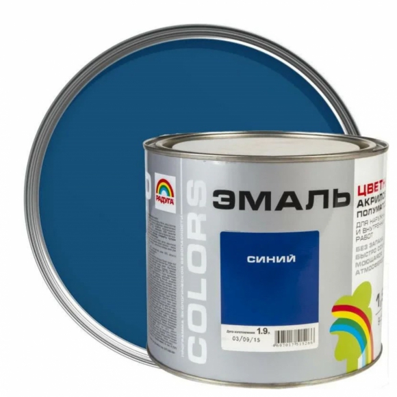 Эмаль РАДУГА-220 Colors акриловая полуматовая для металла,дерева,бетона и кирпича без запаха синяя 1.9л