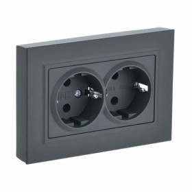 Розетка IEK BRITE 2-ая с/з 16А в сборе РС12-3-БрГ графит /10