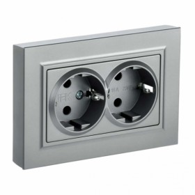 Розетка IEK BRITE 2-ая с/з 16А в сборе РС12-3-БрА алюминий /10