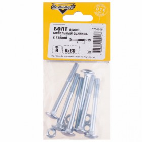 Болт Tech-Krep DIN603 мебельный оцинк М6х60 с гайкой 6шт пакет