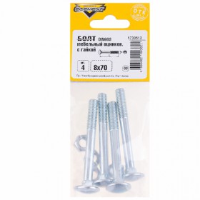 Болт мебельный Element DIN 603 белый цинк 8x70 с гайкой 4шт