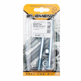 Болт мебельный Element DIN 603 белый цинк 8x100 с гайкой 2шт