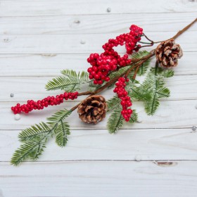 Ветка Зимние мечты веточка с шишк и ягодами 50см 3535540 /343