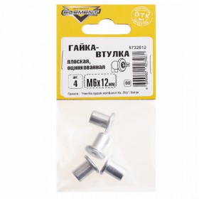 Гайка-втулка Element плоск белый цинк М6х12мм 4шт
