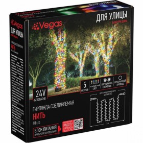 Электрогирлянда-конструктор VEGAS LED Нить прозр провод 48 разноцв ламп 5м 24V /100/4