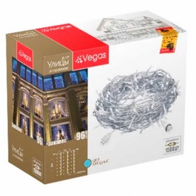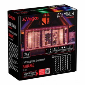 Электрогирлянда-конструктор VEGAS LED Занавес прозр провод 192 тепл ламп 6 нитей 1х4м 24V /32/4
