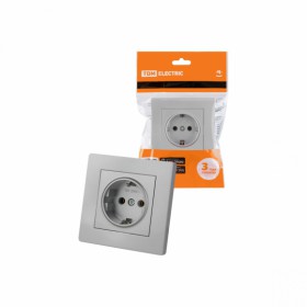 Розетка TDM Сенеж 2П+З 16А 250В с защ шторками серебр металлик /30