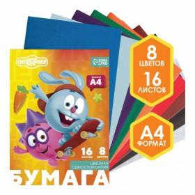 Бумага цвет СМЕШАРИКИ одност А4/16л/8цв 5525611
