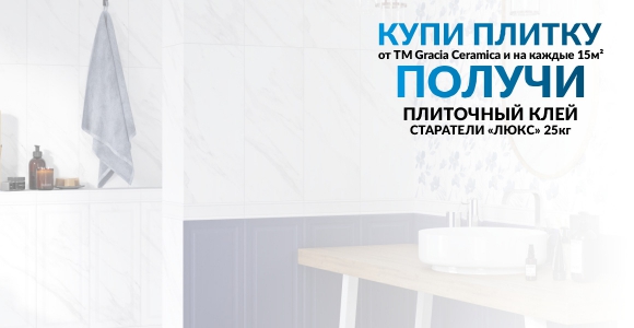 Купи любую плитку от ТМ Gracia Ceramica и на каждые 15кв.м. получи один мешок плиточного клея